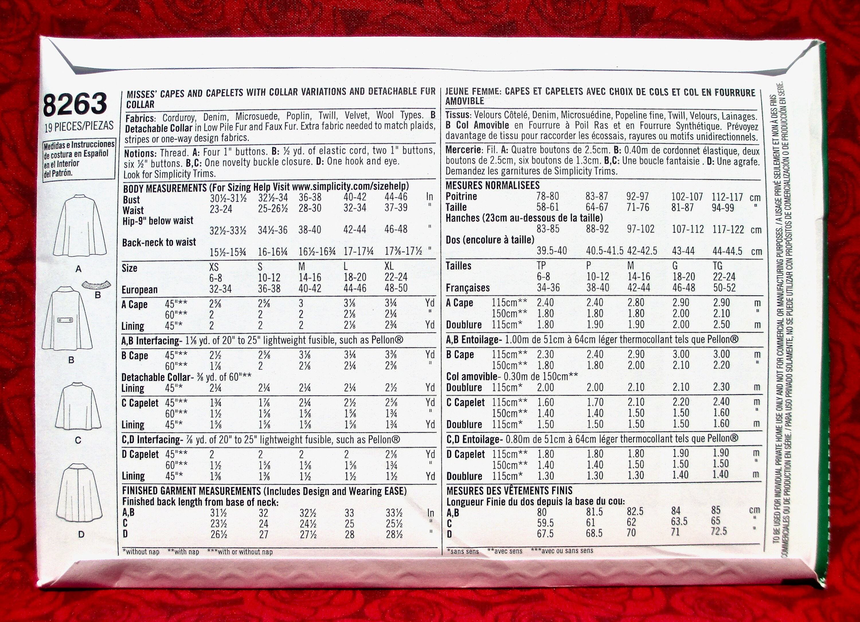 Simplicity 8263 Sewing Pattern Cape Capelet Detachable Fur Etsy